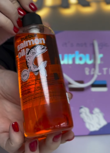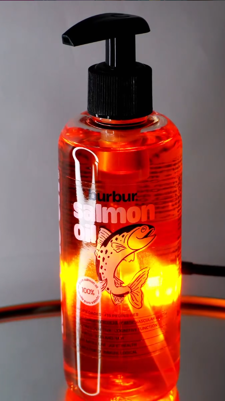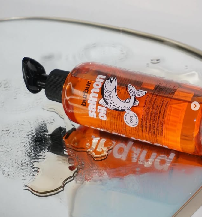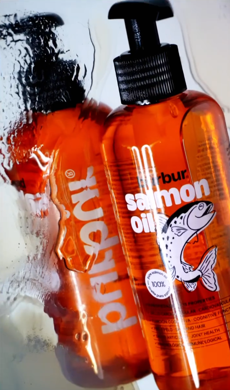 100% aceite de salmón. Un complemento indispensable en una dieta equilibrada para perros y gatos, añadirá sabor a su comida, cuidará su piel y dará un brillo especial a su pelaje. Aceite de salmón puro.